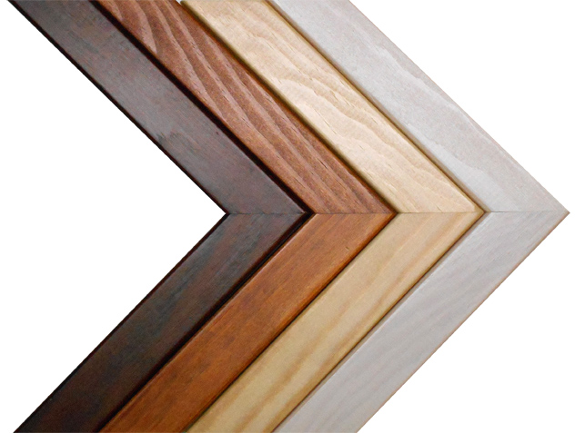 Tyto hranaté rámy nabízíme v několika barvách dřeva. Výška rámů je 1,5 cm a šířka 1,8 cm. Můžete je zvolit ke všem formátům obrazů. Nad 1 metr jsou však pevnější hliníkové rámy. Fotografie je rámem překryta o cca 5 mm z každé strany obrazu.