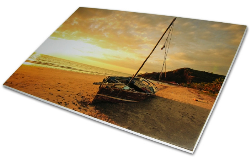 Tiskneme na fotopapír, který se olaminuje a nalepí na desku, která se ořízne na finální formát. Konkurence většinou tiskne přímo na desky, protože je to jednodušší a levnější. Kvalita při tisku na fotopapír a ochrana díky laminaci je však viditelně lepší než při přímém potisku desek. Od rozměru 75x50 cm navíc používáme pevnější desky, aby byl obraz rovný i ve větších rozměrech. V rozměrech nad 1 m však doporučujeme použít ozdobný rám, se kterým bude obraz přeci jen pevnější.