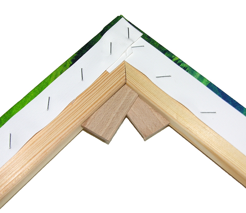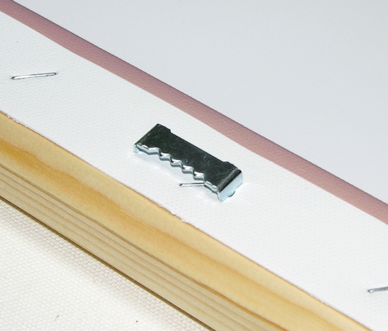 Z dřevěných lišt potřebné délky vytvoříme rám, do kterého se plátno pomocí kleští vypne a připevní sponami k jeho zadní straně. Do rohů rámu se pak vsunou dřevěné klíny, které slouží k případnému dopnutí plátna. Do zadní strany obrazu se nakonec dá závěs, takže už obraz stačí pověsit na zeď.