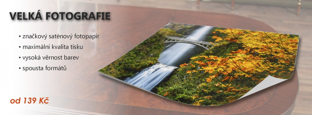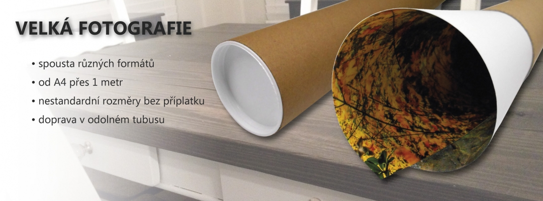 Chcete svou fotografii mít ve velkém rozměru a ne někde schovanou v počítači či mobilu? Vytiskneme Vám ji na fototiskárně pomocí dvanácti barev na silný pololesklý fotopapír. Ten si pak můžete pověsit na zeď nebo vložit do rámečku. Barvy při tisku umíme zachovat věrné tomu, jak jste fotografii pořídili. A pokud nemáte zrovna dokonalou fotografii, tak Vám ji můžeme zcela zdarma vylepšit. Objednávku nám můžete poslat emailem nebo použít editor, ve kterém lze foto oříznoout, otočit a zobrazit si rozměry s bezpečnou kvalitou tisku pro Vaší fotku.
